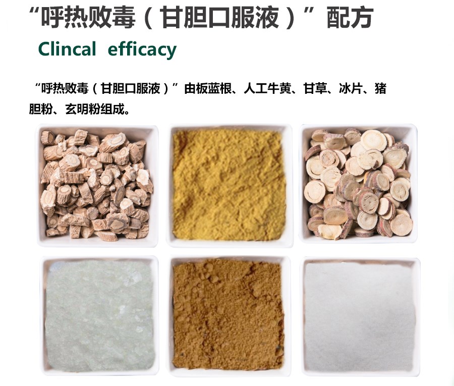 【處方】 板藍根、人工牛黃、甘草、冰片、豬膽粉、玄膽粉。