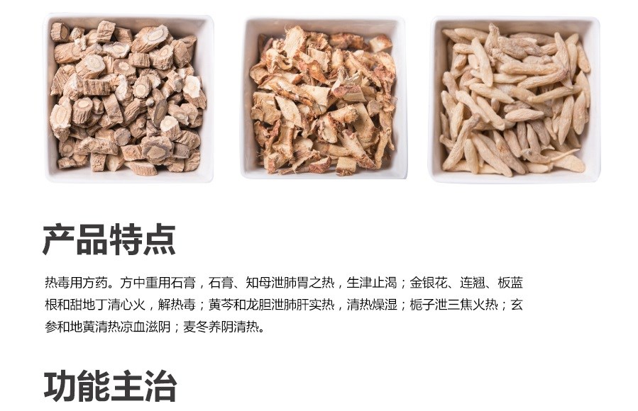 【處方】 石膏、金銀花、玄參、黃芩、生地黃、連翹、梔子、龍膽、甜地丁、板藍(lán)根、知母、麥冬。