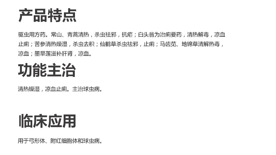 【主治】主治球蟲病。