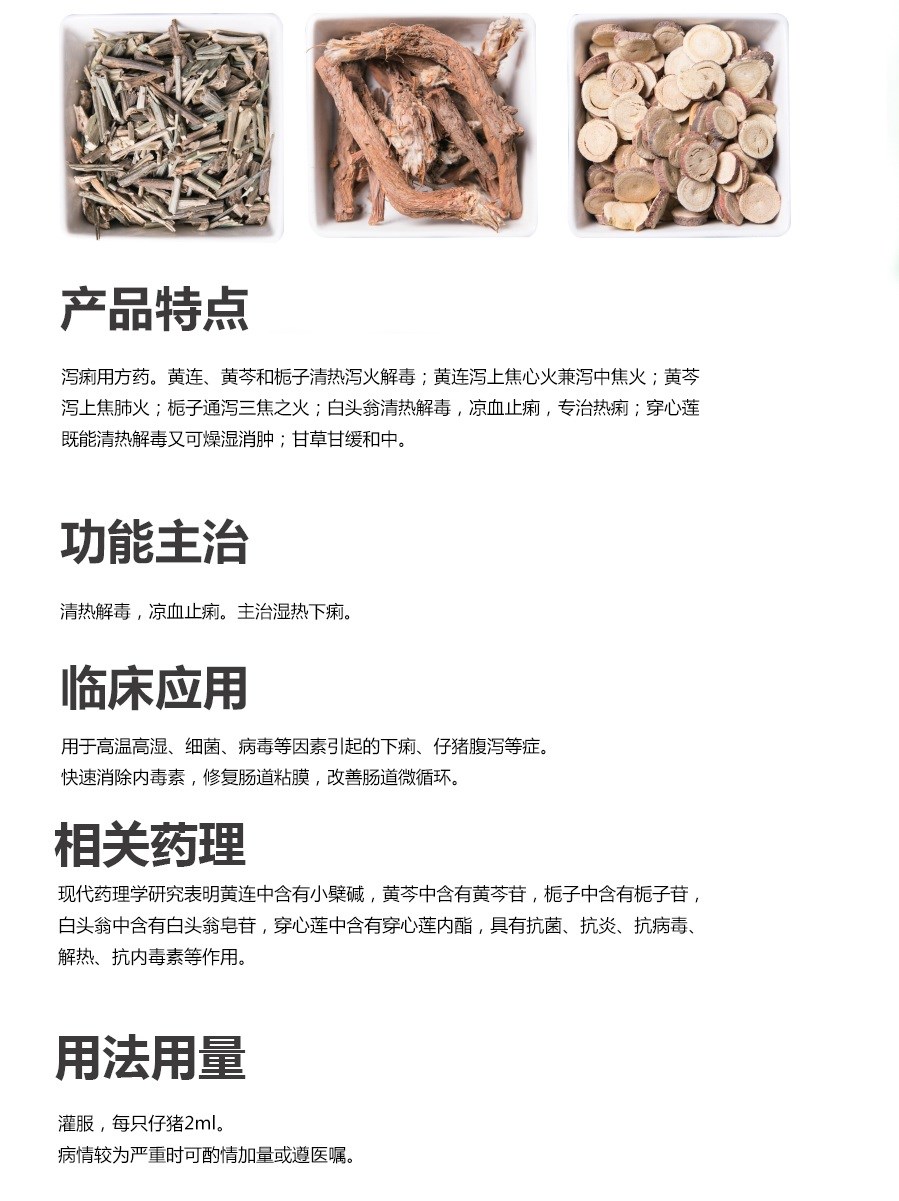 【處方】黃連、黃芩、梔子、穿心蓮、白頭翁、甘草。