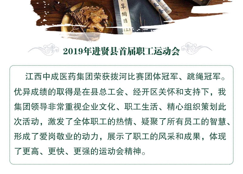 | 熱烈祝賀2019年進(jìn)賢經(jīng)開(kāi)區(qū)首屆職工運(yùn)動(dòng)會(huì)暨園區(qū)機(jī)關(guān)職工運(yùn)動(dòng)會(huì)江西中成醫(yī)藥集團(tuán)取得優(yōu)異成績(jī)! |