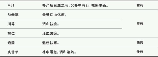 產(chǎn)后營(yíng)血虛虧,惡露當(dāng)下,若下之未盡,瘀阻胞宮,而發(fā)腹中疼痛。還因產(chǎn)后氣血大虛,固當(dāng)培補(bǔ),然有敗血不去,則新血亦無由而生,故見腹中疼痛,治宜補(bǔ)養(yǎng)營(yíng)血,祛瘀生新之法。